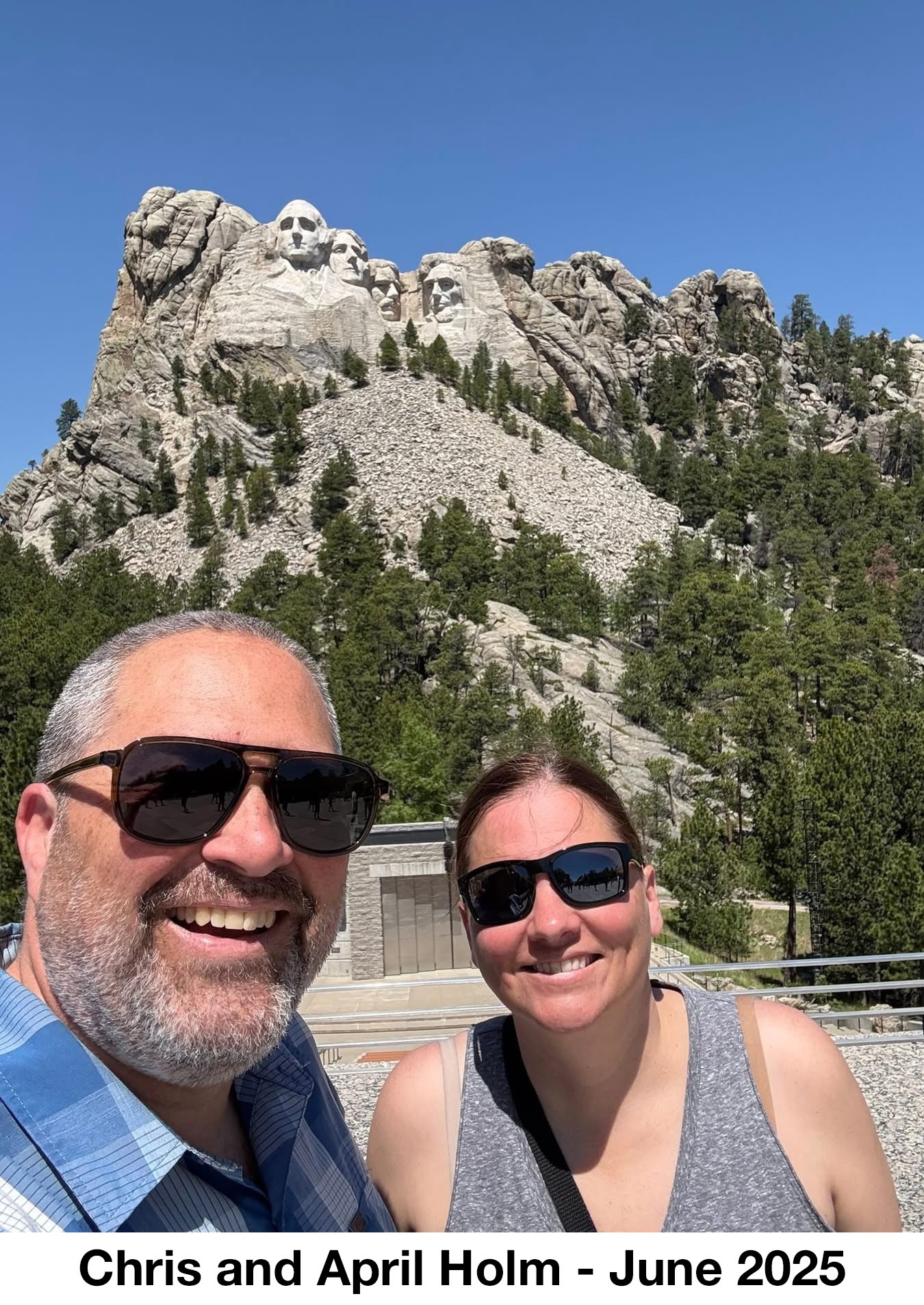 Chris and April Holm at Mt Rushmore during a motorcycle trip to South Dakota in June 2025.
