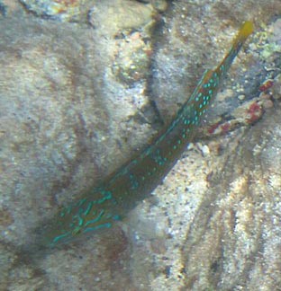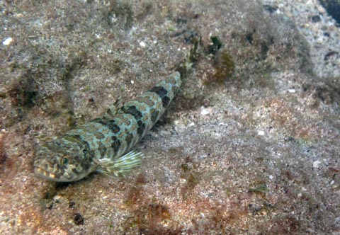 A Lizardfish, probably a Sand Diver, at Maho Bay Yellowtail Snapper waiting for food under the Pepper at Whistling Cay