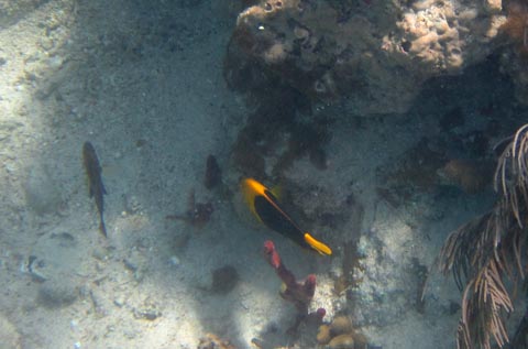 Al on the beach at Waterlemon Cay Sergeant Majors and French Grunts at Hansen Bay