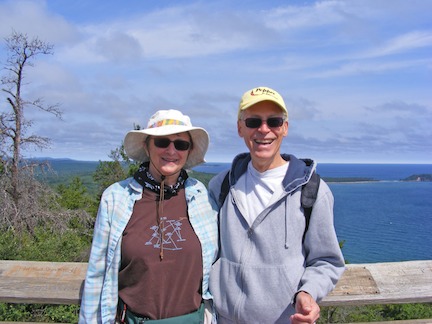 One day we drove up the Lake Superior shore northwest of Marquette. Our first stop was Sugarloaf Mountain. The views were great and we enjoyed some ripe blueberries growing on the summit. Then we continued up to Big Bay. There we first visited the Big Bay Point Lighthouse. It is no longer working and has been converted into a Bed and Breakfast. It is for sale so, if living in a lighthouse appeals to you, here's your chance. Finally, we visited Bay Cliff Camp where Al had been a camper when he was eight and then a counselor after he graduated from high school. |