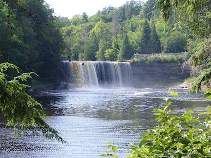 | Gail and Al on the overlook at the Upper Falls | The Upper Tahquamenon Falls, 50 feet high and 200 wide |