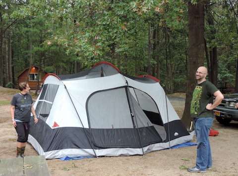 | Doug and Lisa putting up their tent | Abby likes the tent |