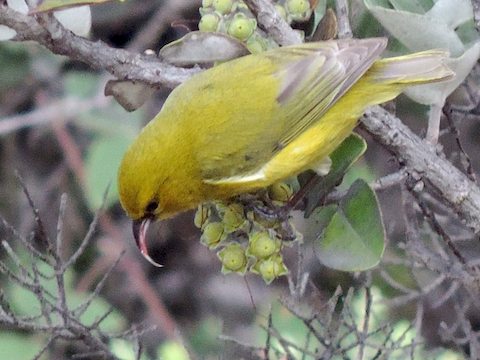 An ʻAmakihi, another endemic honeycreeper, in Hawai'i Volcanoes National Park near the Jaggar Museum. |