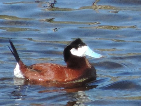 A strikingly, and comically, attired Ruddy Duck on Christian Pond |
