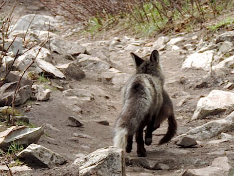 Fox hurrying to its den with a marmot for lunch |