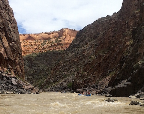 In Westwater Canyon. The black stone is the same Visnu Shist formation as at the bottom of the Grand Canyon |