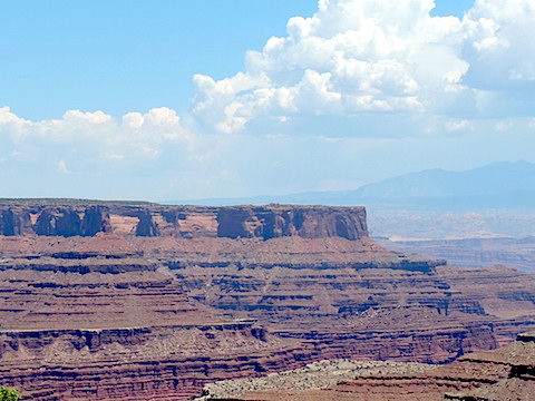 We chose Dead Horse Point State Park in Utah because a friend said it was awesome and because the average temperatures for June and July were below those for Idahos Bruneau Dunes State Park, where we were in 2013. Well, June this year was unseasonably hot! It was a dry heat, but hot is hot. Then on the 4th of July we had a spectacular all-night thunderstorm. The rest of July was a bearable, dry heat. By the way, out there even the rain is often dry. The word for rain that evaporates before reaching the ground is virga. The scenery is awesome!