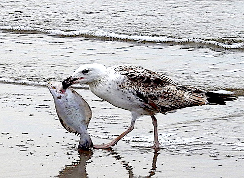 At Coney Island, a juvenile Great Black-backed Gull with too much to swallow |