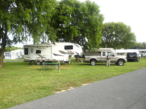 It wasnt as easy to get there as we expected because we had intermitent heavy downpours during the entire trip. Fortunately, there was a gap in the rain when we arrived at the campground and we were able to set up without being drenched. The next morning, we noticed that our neighbor had NASA stickers on his truck. It turns out that he worked at Goddard on the servicing missions. We both knew Joe Rothenburg and Dave Leckrone on the Project and Matt Mountain at the Tute. Small world! We sometimes make some blunder on our first camping trip of the year. Ten years ago, when coming here, I forgot my wallet and drove the distance without a drivers license. Good thing I was not stopped. In 2018 at a different park, I forgot to put down the trailers landing gear before pulling it off the hitch. That damaged the truck, but, luckily, no one was hurt. This time, nothing so drastic occurred. We remembered to bring the coffee, but it was in the form of whole beans, not the ground form needed in our coffee maker. Our first destination the next morning was a WaWa for our daily energy. |