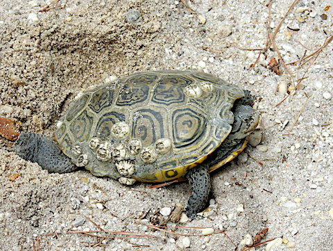 The egg-laying terrapin. Notice the barnacles clinging to her shell. |