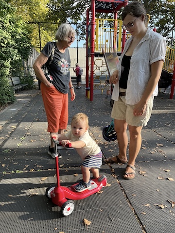 We visited Brooklyn in 2024 from September 20 until September 22 to celebrate the first birthday of our grandson Morgan (and to spend time with CJ). Driving up from Maryland, we were able to bring things that would not travel easily in the train. One of those things was a little Radio Flyer Scooter present for his birthday. He loves to push things and CJ told us that he had been stealing other childrens scooters at the playgrounds.