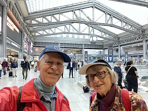 Having had gotten advice from CJ, we found the Moynihan Train Hall with its high glass ceiling. We had a fast food meal to avoid eating on the train. We were called to board at Track 10 about 10 minutes before our train departed. We easily found seats this time and settled in for an effortless ride home.