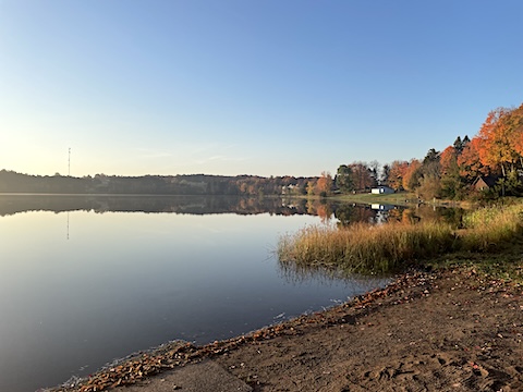 | The main building of Lakeshore Motel | The mirror-like surface of Ice Lake on Saturday morning |
