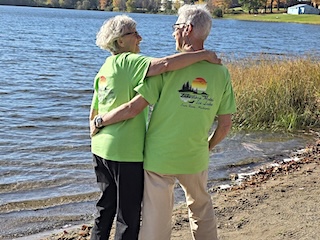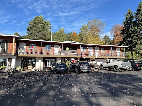 We stayed at the Lakeshore Motel, on the shore of Ice Lake. It has new owners since last we stayed there. They are as friendly as the former owners. Gail and Al bought matching T-shirts with the motels name.