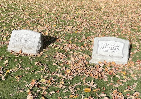 New gravestone for Aunt Svea Passamani matching that of her husband Alec |