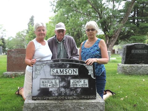 Vicki (3rd gen), Grant, and Sharon at their grandparents' grave |