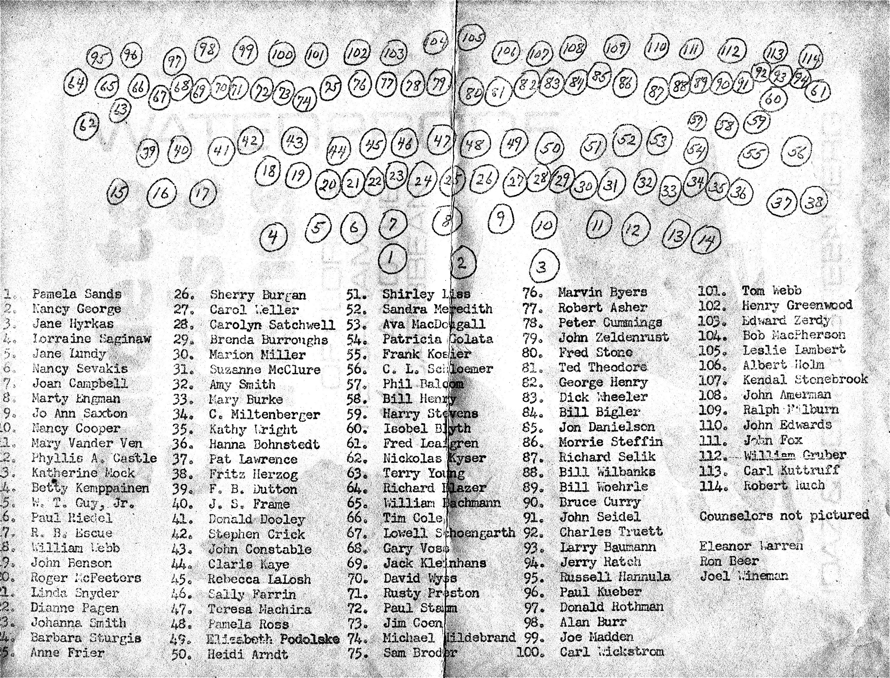There are three images on this page. First is a group photo from the High School Honors Science Institute held at Michigan State University in summer 1961. Albert Holm attended this during the summer between his junior and senior year in high school. At the end of the session, he wrote, My major interests are astronomy, math, and political science. This summer I gave a long and boring talk on quadratic residuals in Dr. Frames math class. That is all I am going to say about myself.