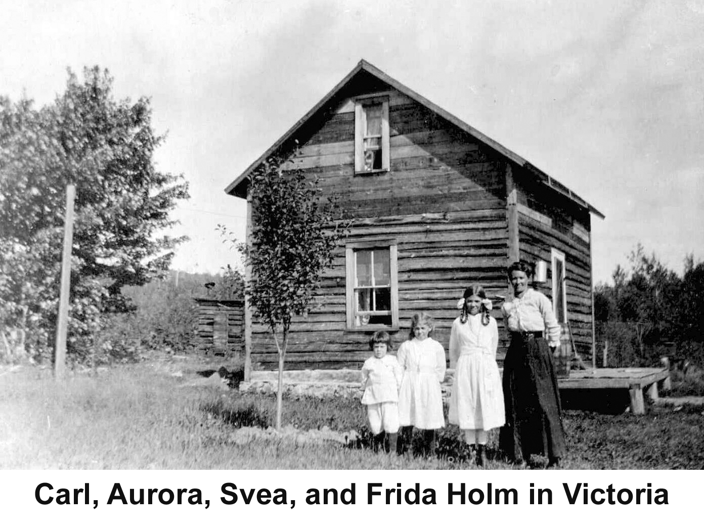 Carl, Aurora, and Svea Holm with their mother Frida in front of a home in Victoria, Michigan. This house looks like the employee houses that still existed in the second half of the twentieth century.