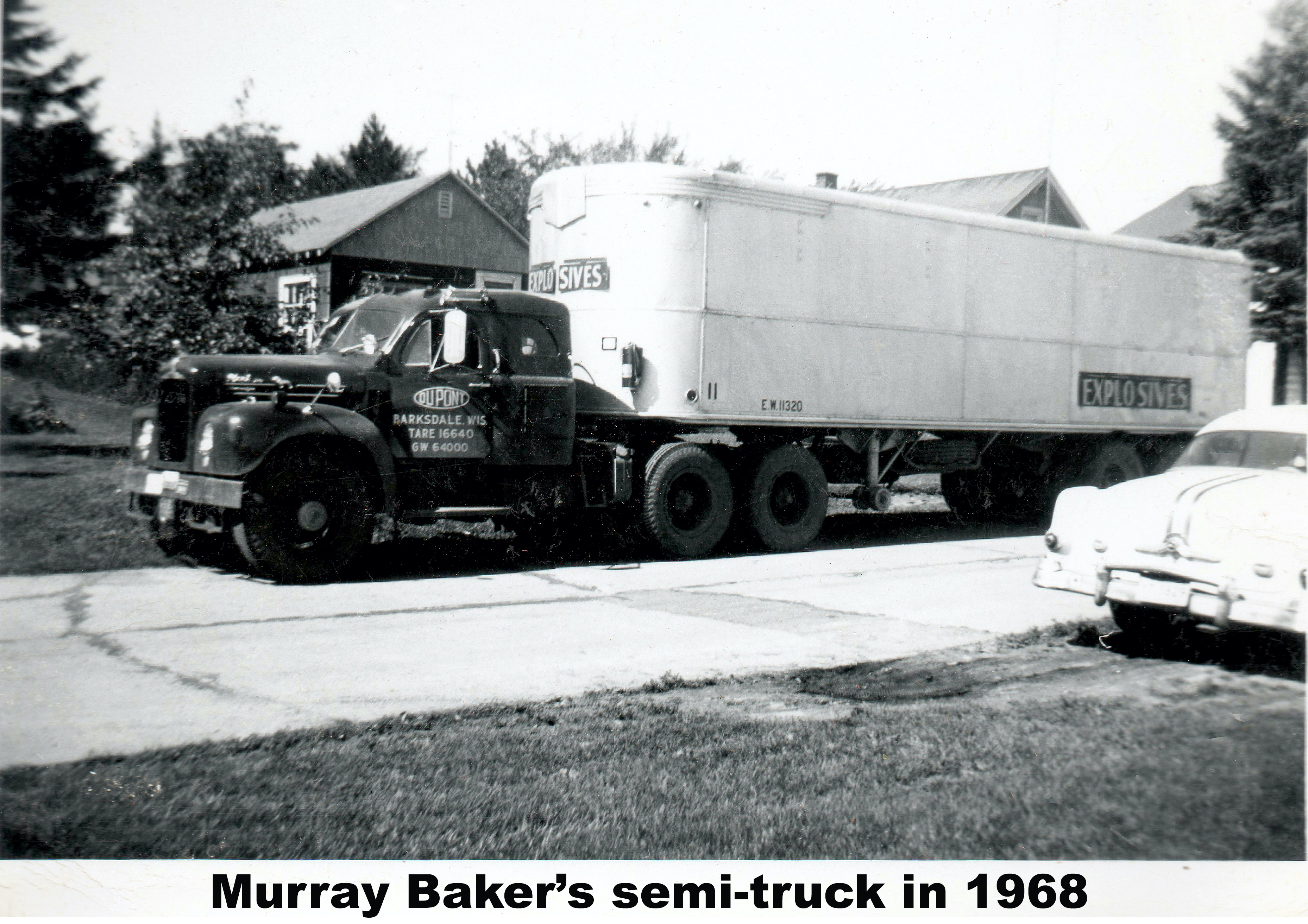 Murray Baker teamed with his brother to drive explosives from coast to coast. He parked the truck in front of his home in this 1968 photo.