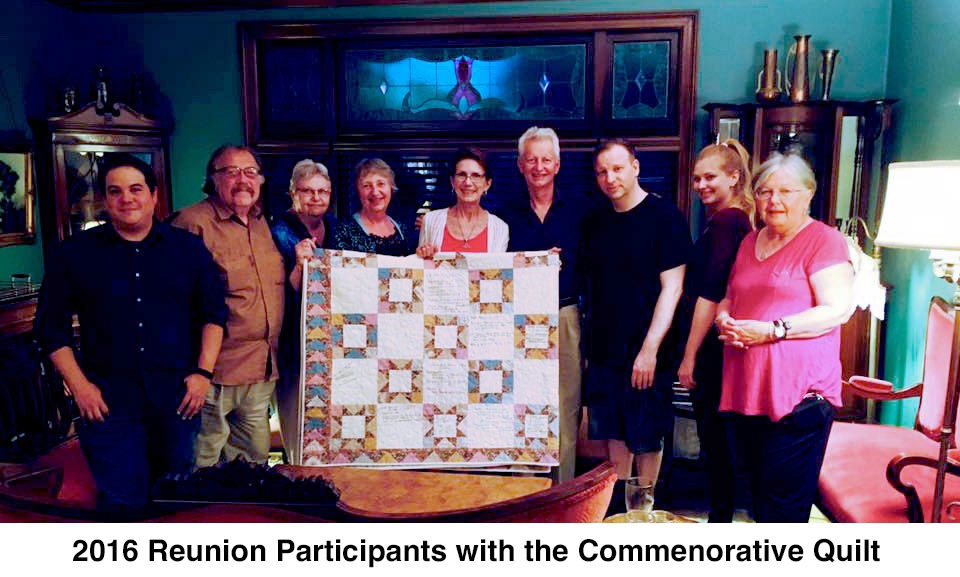 Danny and Brad Holway, Pat Holm, Robin OBrien, Gail McKay, Casey Tolhurst, Casey OBrien, Alaina Tolhurst and Linda Beacham with the commenorative quilt.