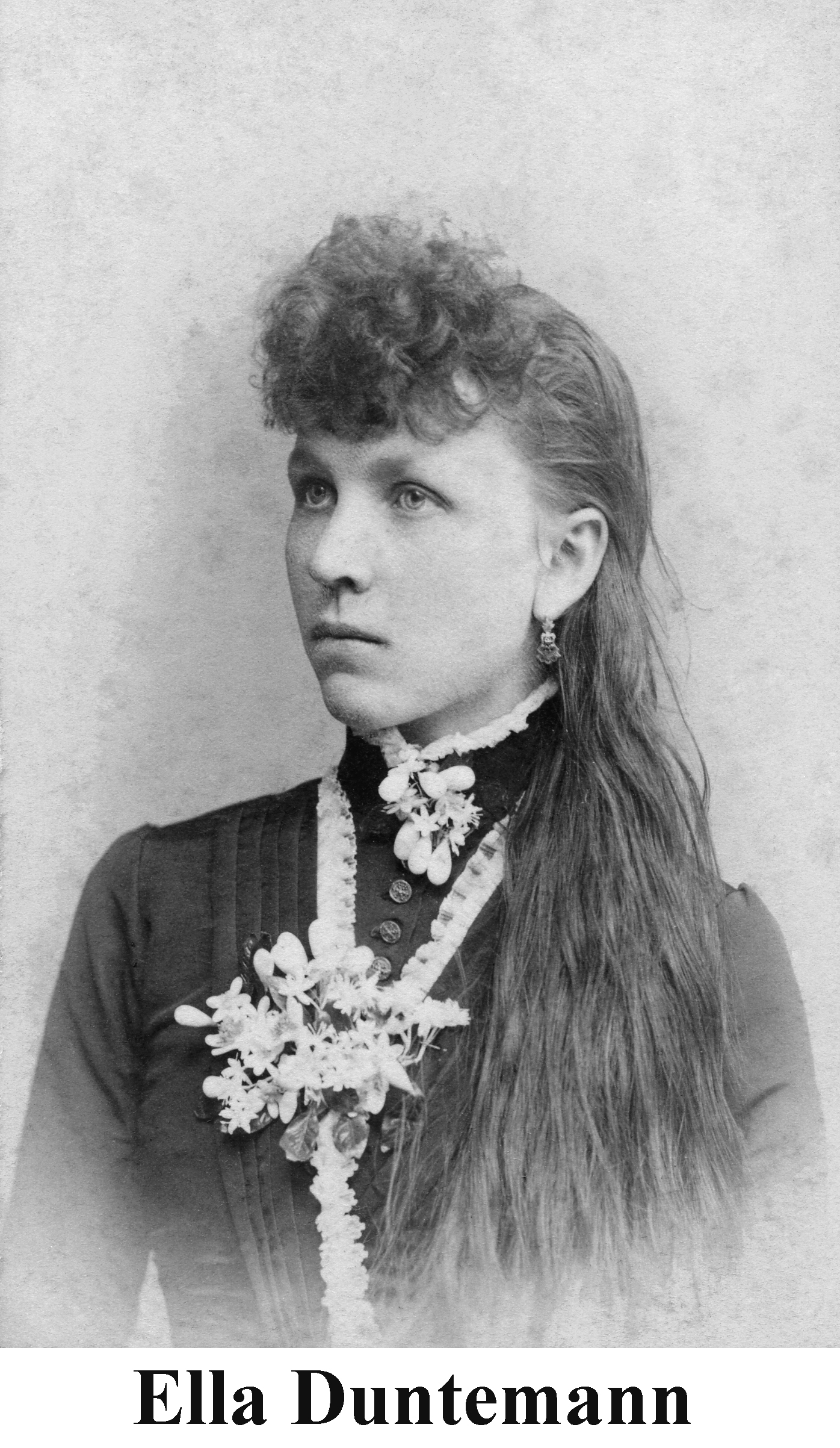 Photographs of Fred Henjes and Ella Duntemann. The photos appear to be taken at the same time as their 1890 wedding photo.
