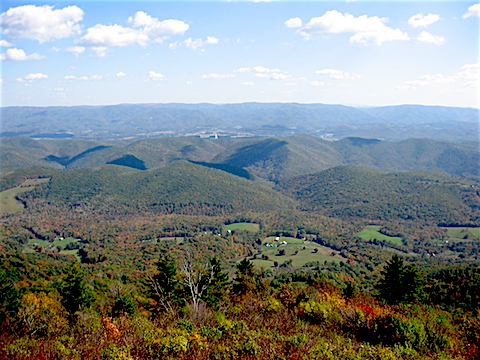 Departing on Sunday morning was a little slow because the Zink's trailer would not attach to its hitch. A local mechanic fixed the problem with a file and grease. Despite the slow departure Sunday, some of the Clan visited the National Radio Astronomy Observatory at Green Bank, WVA. The Green Bank Telescope there, with its 300-foot diameter, was for years the largest radio telescope. You can see the tip of it peaking over a hill in the photo above from Bald Knob. |