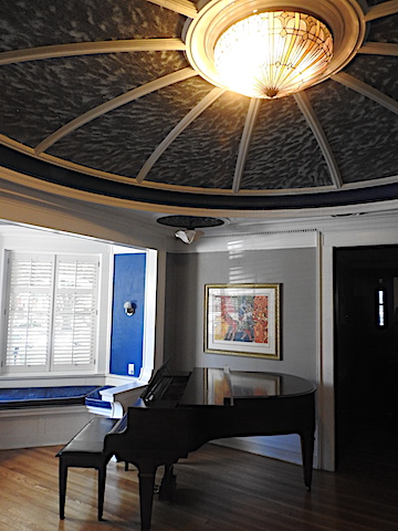 The Zinks also brought food for breakfast. We decided to boil some of the eggs in the evening to make them available for Wednesdays breakfast. The mansion is also rented out for events so the gas range in the kitchen is a large commercial quality appliance. Half the range top is a griddle. The other half has oversized burners. Bill put a pot with water and eggs on one of the burners to cook the eggs. Soon a terrible odor filled the house. It even brought the owner down from the third floor. The hot gasses from the large burner were rising around the pot and burning rubber in the pots handle. No permanent damage was done, but the smell lingered for over a day and we did not use that pot again.