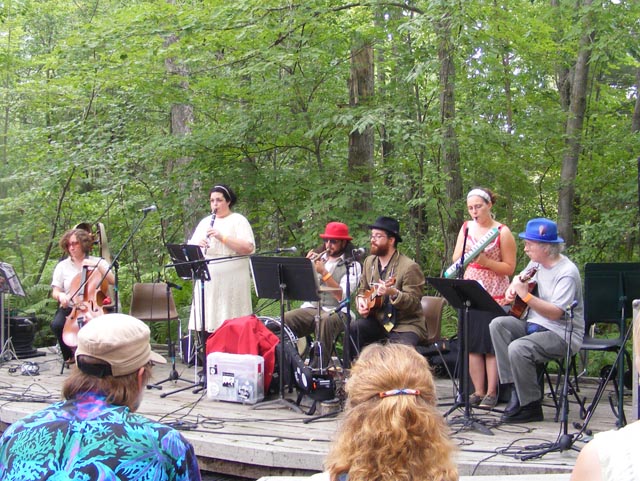 There were many other talented and memorable musicians performing that weekend, both during the evening concerts and the daytime workshops. Four that I especially enjoyed were Bill Staines, who may be best known for his Animal Song, Laurel Premo (at least in her workshop of fiddle songs she learned during a year in Helsinki), Tom Kastle, who sang songs of sailing the seas and the Great Lakes, and even Dr Kickbutt's Orchestra of Death, which is not very folksy.