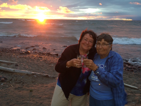 In addition to cooking and eating (always a popular activity) we: walked along the shore of Lake Superior; sat around a nighttime campfire; visited a fire museum and the National Historical Park Visitor Center, both in Calumet; took a sunset cruise to the tip of the Keweenaw Peninsula on the Isle Royale Queen; and visited the Quincy copper mine in Hancock. A few of us even braved the sauna in our rented cottage. One highlight was the celebration of Bob Bower's 80th birthday, which is coming up this fall.
