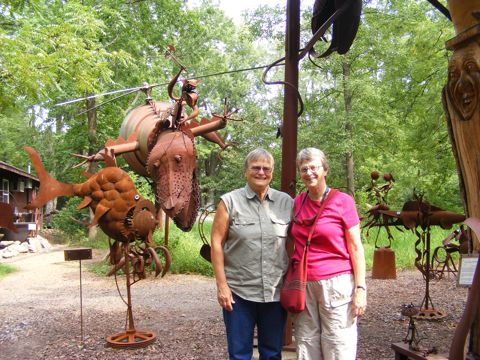 Our next leg took us to visit Linda, Gail's childhood friend, near Marshfield, WI. With her, we visited Jurustic Park, supposedly a re-creation of marsh creatures that became extinct when farmers moved into the area in the mid 19th century. The "curator" of the site, a retired lawyer, has an entertaining spiel. He will sell you some of the Little Critters for $100 to $300 each. If you decide to visit, get your directions off the Internet first; there are no signs to show you the way.