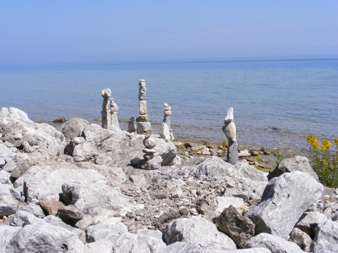 One interesting curiosity of Mackinac was that someone or some group had stacked rocks on top of one another along the eastern shore of the island. In some places, it looked like a village of these little guys had been assembled.